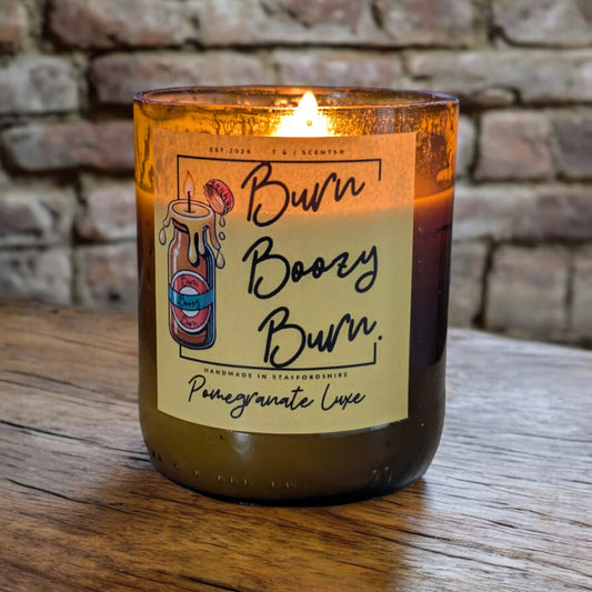 Pomegranate Luxe | Beer Bottle Wooden Wick Candle